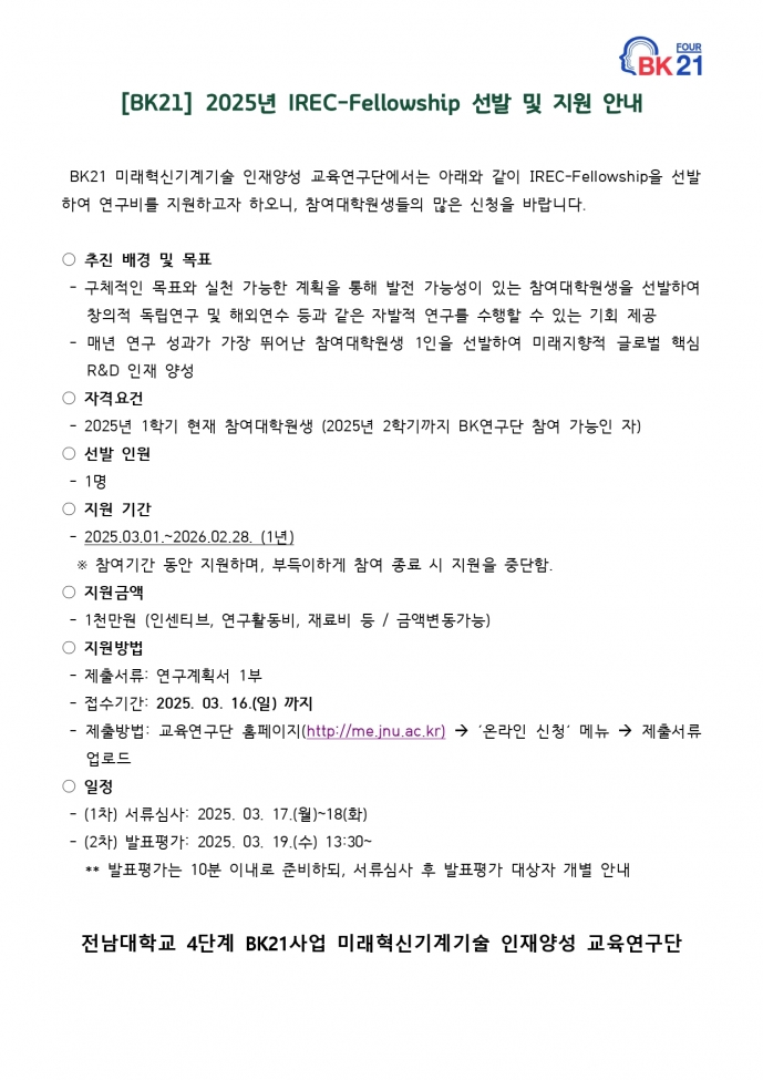2025년 IREC-Fellowship 선발 및 지원 안내